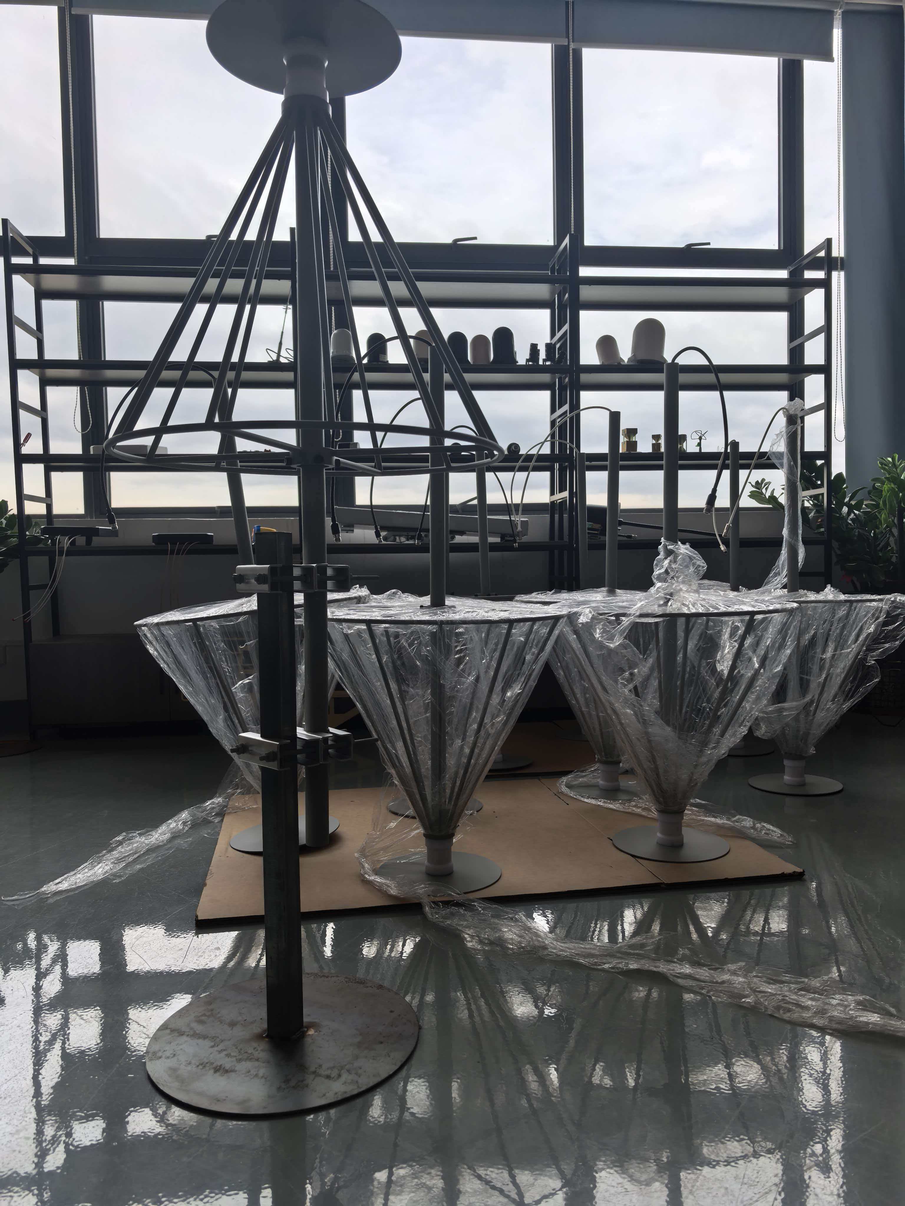 Kundenspezifische Breitband-Discone-Antenne mit hohem Gewinn von 100-6000 MHz für Anti-Drohnen-Systeme